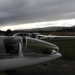 Auch wenn man sicherlich ewig dort oben bleiben könnte muss auf Grund des Tageslichtes irgendwann mal ans Landen gedacht werden. BC und Thomas, immer noch über 5000m hoch, ziehen die Klappen und gesellen sich zu Tim für einen gemeinsamen Fotoflug. Thomas als Co schießt Fotos ohne Ende. Mitten im Fotoshooting, Tim setzt sich gekonnt in Pose, fängt BC auf einmal wild an zu gestikulieren. Tim winkt freudig zurück. In der unendlichen Weite über den Schottischen Highlands hat sich ein britischer Duo zu uns gesellt. Tims Blick war natürlich auf die DG500 gerichtet, als er BC’s Funkspruch hörte: „Hey Tim pass auf! Links von dir ist ein Duo“ . Beim Blick nach links war dann tatsächlich ein Duo in unerwarteter Nähe. Das Zusammenzucken von Tim konnten selbst die Duo-Piloten sehen, die selbst Abends darüber noch sehr erheitert waren.